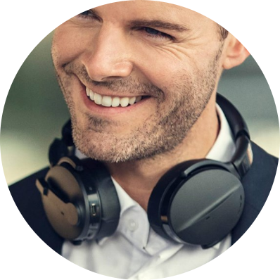 No ouvido, o fone conta com acabamento em courino e DSP que ajusta o som em ambientes com ruídos e barulhos indesejados.